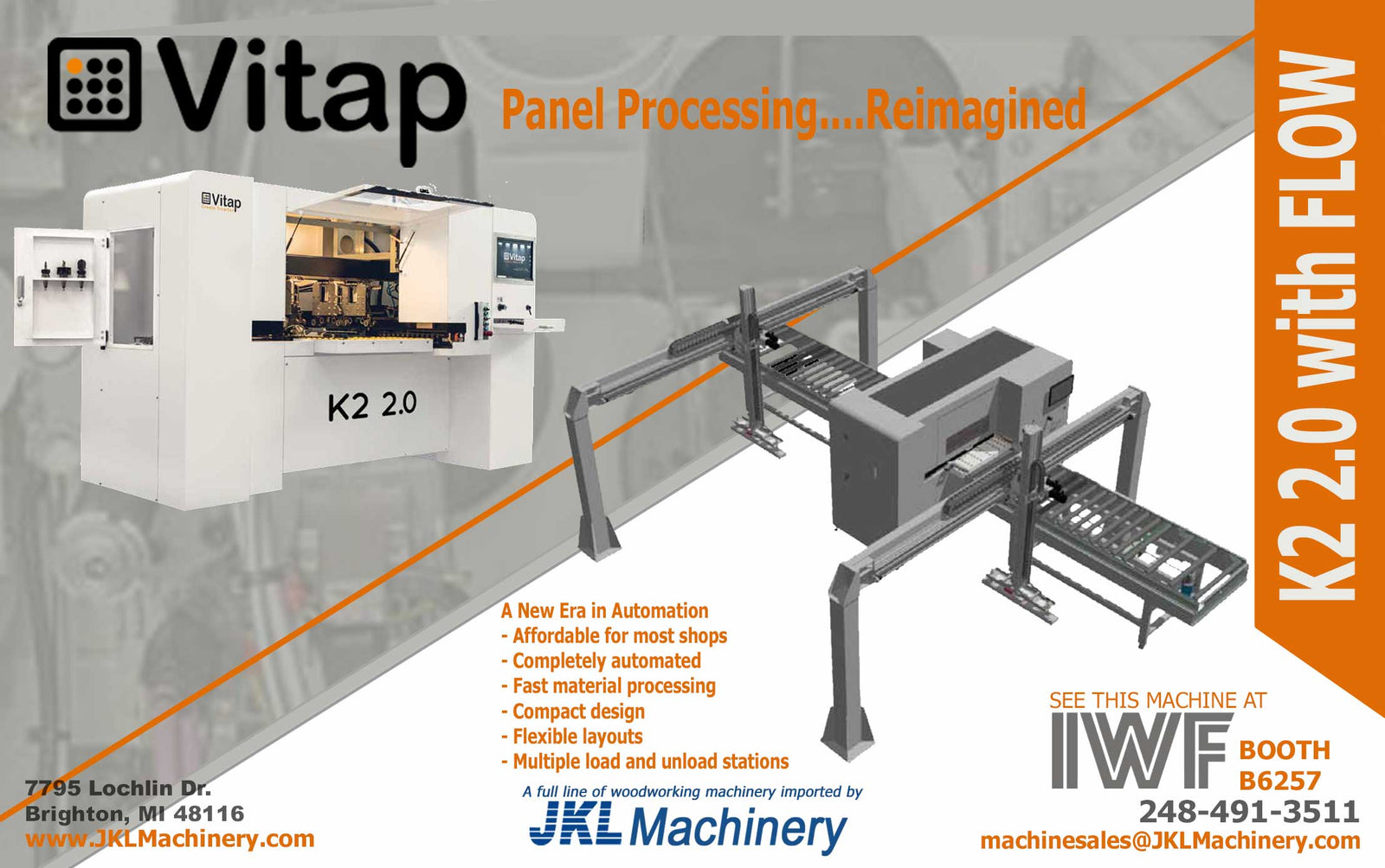JKL Machinery is bringing affordability to automation with the K2 2.0 with Flow System. The K2 2.0 with Flow System is a true fully automatic machine that can load, process and unload parts without human intervention. In today's market, that makes this machine a must for any shop, large or small, that is looking to increase output while stabilizing or decreasing overhead. Come see this machine operating at the IWF in Atlanta.